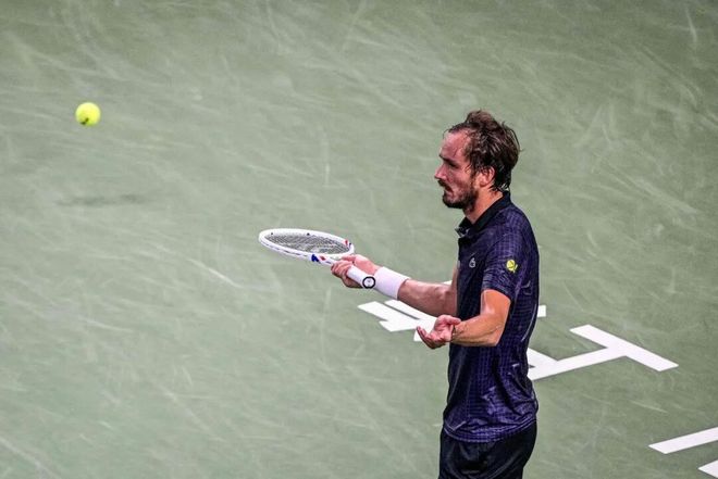 抢七之前,梅德维德夫右腿抽筋。主裁让他的理疗师进场,但梅德维德夫没有接受处理,自己简单拉伸缓解后,以进攻为主,几乎放弃防守地打完了第二盘。勒纳·钱追回一盘,双方进入决胜盘。