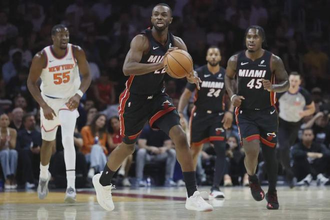 热火开赛3胜1负,防守效率联盟第1,进攻效率第5。忽略小样本的数据,有这样两件事:防守纪律性依旧,手里的牌搞好防守的条件也有,这一端不一定能维持第一,维持高水准可以预期;没有顶级主攻型球星,希罗伤缺,罗奇尔不可名状——何尝不是一种解决同类球员过多的办法——热火进攻竟然意外地不错,快节奏篮球飞起。鲍威尔打了3场球,场均24分,还是去年老来俏版本。老秀状态不错,他跟维金斯零敲碎打,快攻、错位敲不少分。冯泰奇奥是准的版本,这赛季手感复活。约维奇、韦尔也各有发挥。这些都不是重点,重点是热巴和小米切尔。所以“热巴投三分”这个被反复证伪的命题,这赛季终于正式提上日程了么?开赛4场,热巴场场出手了至少5记三分,命中率39.1%。样本不足以证明什么,出手频率还是表达了一些意图。如果热巴在这一块进化了,他的战略价值就有些恐怖了。