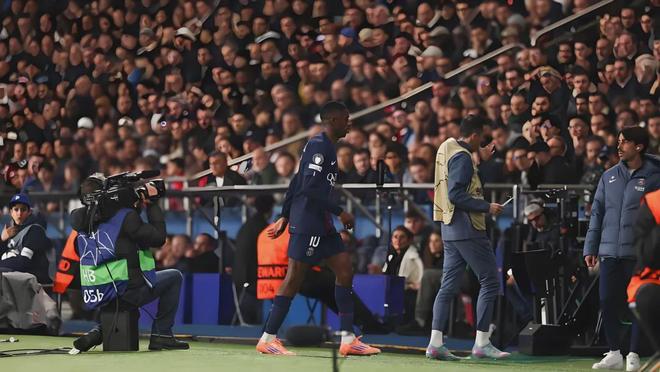 第25分钟,登贝莱在禁区接到队友的传球,他完成破门,但因越位在先,进球无效。仅过2分钟,登贝莱疑似受伤无法坚持比赛,被韩国国脚李刚仁换下。