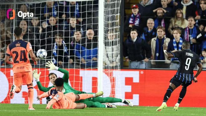 然而,到了比赛里,巴萨却没有了之前比赛中的统治力。开场第6分钟,布鲁日边锋便用反越位成功撕开了巴萨的防线,随后他一路长驱直入助攻特雷索尔迪轻松破门。仅仅两分钟后,巴萨的费兰便站出来予以回应,门前接费尔明横传巧射破门。只不过,红蓝军团一直没能解决自己的防守问题,第17分钟布鲁日在反击战打出了巴萨般的tiki-taka,连续一脚出球后由博尔赫斯再下一城。到了下半场,巴萨狂攻不止,亚马尔和费尔明的二过一帮助球队再次扳平比分,不过布鲁日的反击依旧生生不息,第63分钟博尔赫斯挑射破门完成两射一传,随后他在禁区内的倒地一度被判罚为点球,可惜被var无情拒绝。到了第77分钟,巴萨靠着对手的乌龙球再度追平比分,可比赛临近结束前,对手前锋弗曼特铲翻什琴斯尼后再度破门,而在这粒进球被吹之后,场上比分最终定格在了3比3。